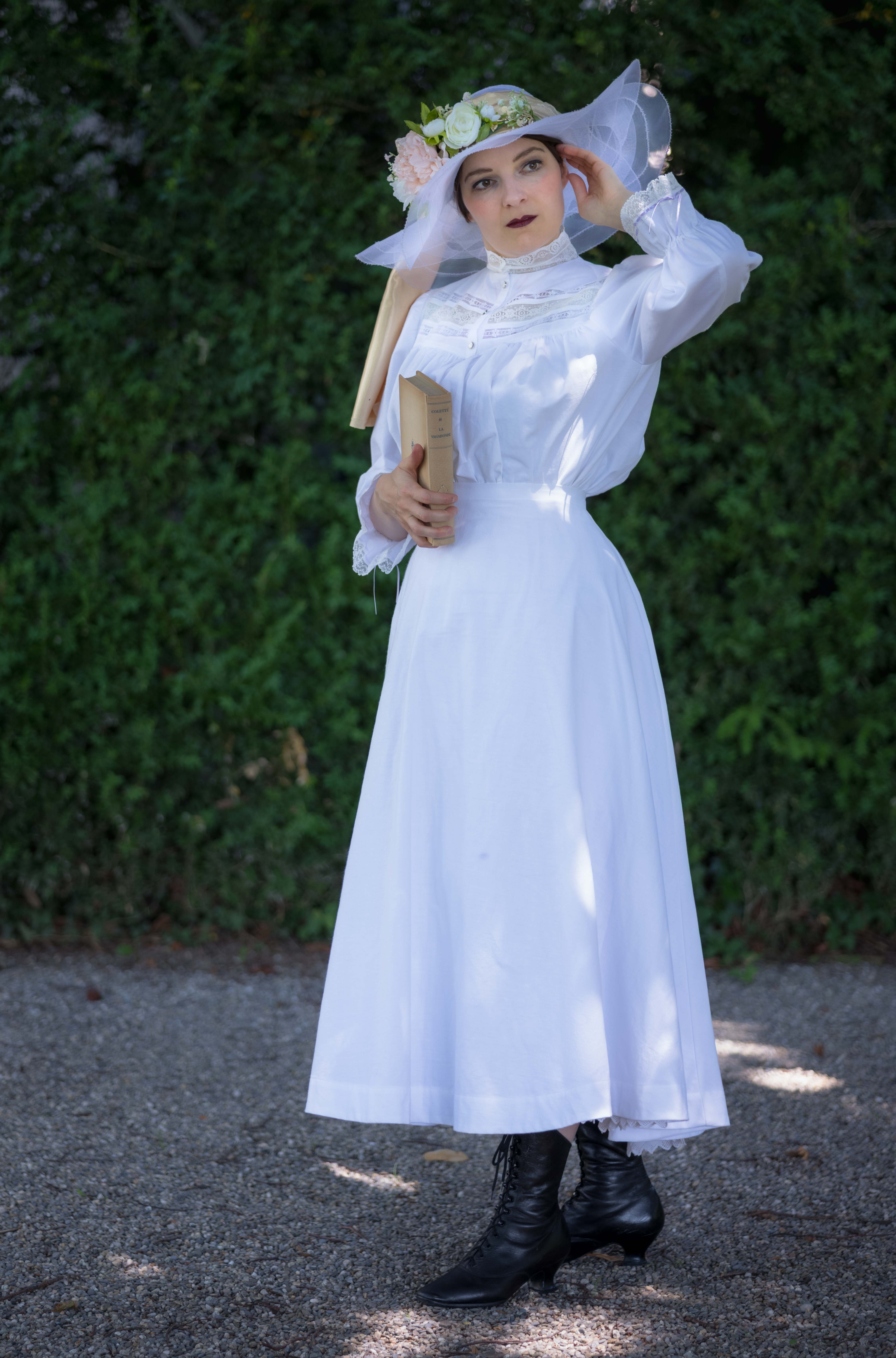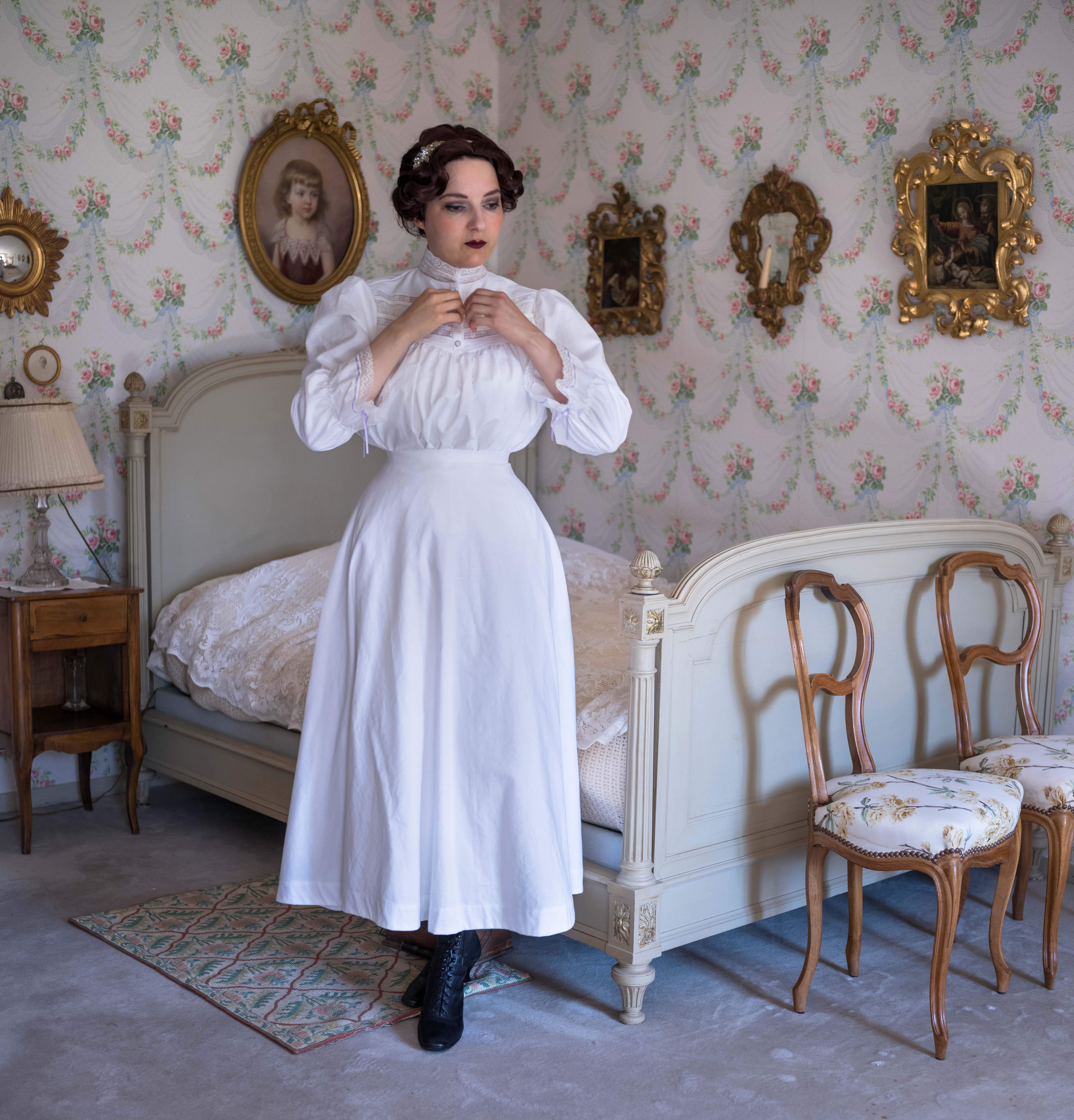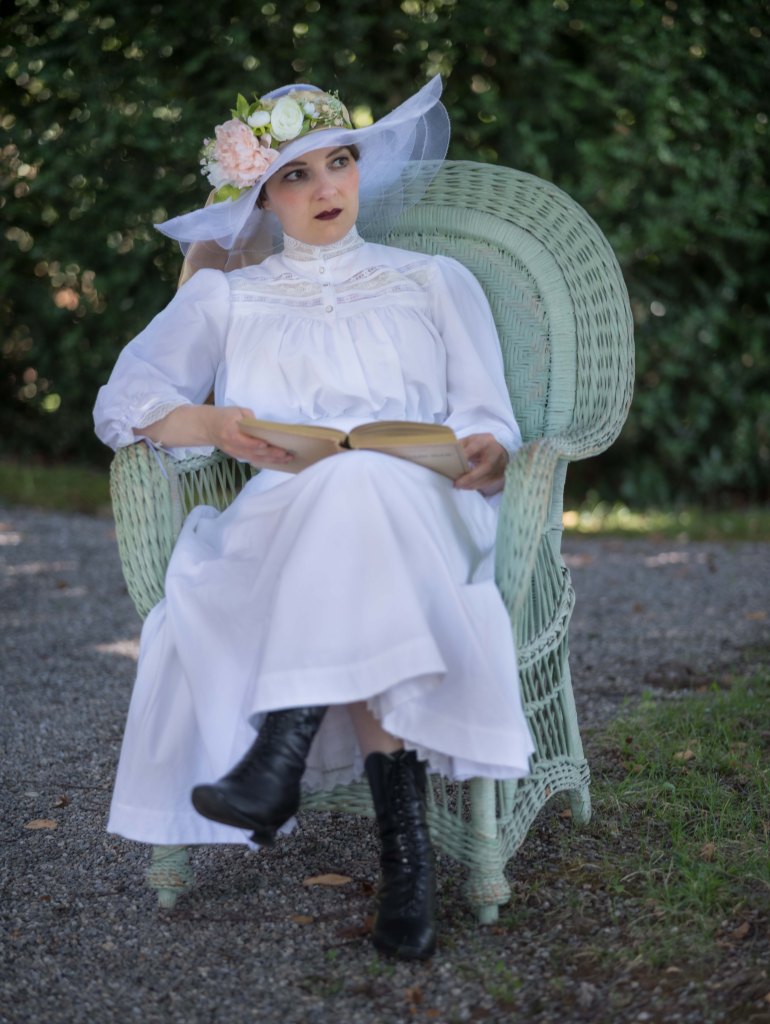 J’ai commencé ce projet de tenue de suffragette en octobre 2024. Presque un an plus tard, il est temps de faire le bilan et de vous montrer des photos, et même une vidéo de l’habillement, couche par couche.