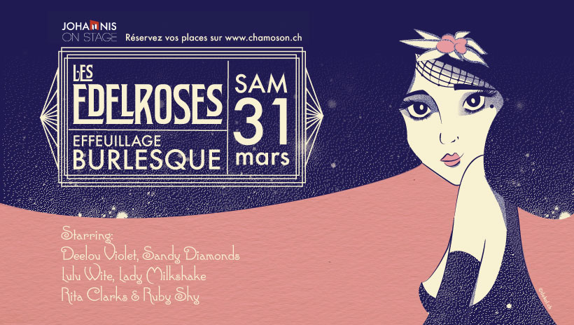 J’ai l’honneur de vous annoncer la naissance toute fraîche de notre nouvelle revue burlesque avec Les Edelroses, regroupant les effeuilleuses DeeLou Violet, Sandy Diamonds, Lady Milkshake, Rita Clarks, et moi-même, ainsi que notre French maid Ruby Shy ! Le prochain spectacle aura lieu le samedi 31 mars à la salle Johannis de Chamoson (Valais).