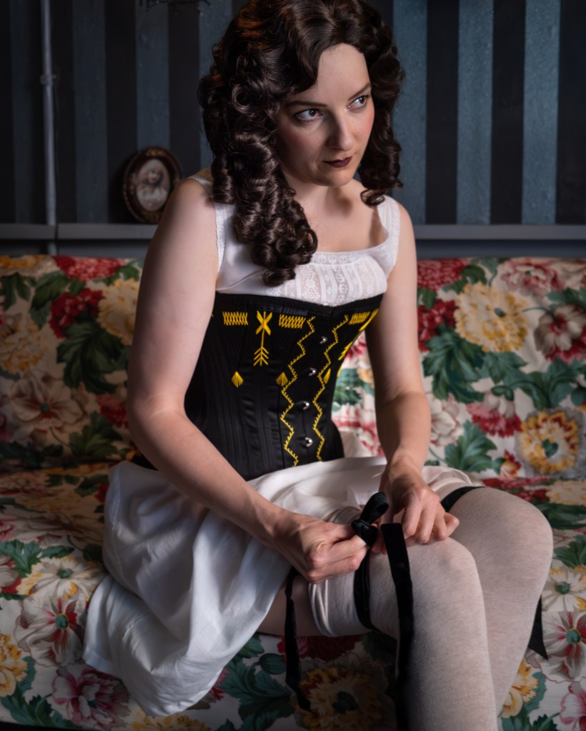En guise d’avant-goût, je vous montre quelques photos légèrement en marge d’un shooting récent, pour lequel j’ai porté des tenues de dessous victoriens. Avec le photographe Jean-Claude Péclet, nous avons eu la chance de pouvoir réaliser ces photos dans le merveilleux cadre du théâtre The Millers à Zürich. Les corsets de ces tenues ont été tous les deux de longs, fastidieux mais passionnants projets. Je vous ai déjà parlé du premier, et je vous raconterai ces prochains mois l’histoire du second, qui est une reconstitution d’un magnifique corset historique de 1870.