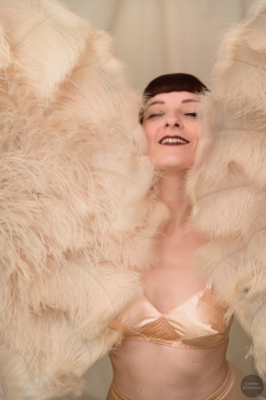 Passionate about the elegance and music of the early 20th century, Lulu Wite likes to take her audience on a journey through the charms of the Jazz Age. With her mischievous look mixed with her soft sensuality, she evolves to the sound of the gramophone and often proves to be much less innocent than she appears… For her costumes, she uses her creativity and her corsetiere skills to recreate the beauty of the past.